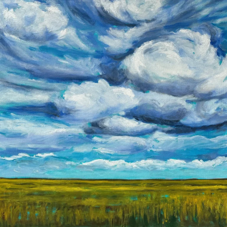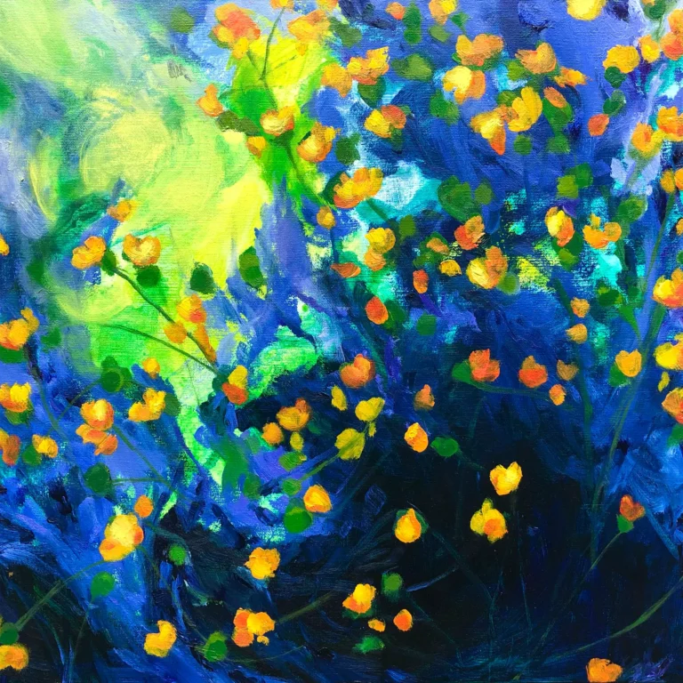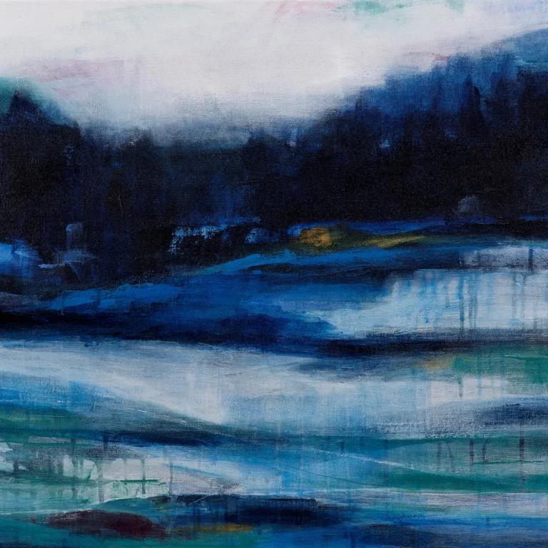 I started this painting during a stressful period earlier this year and opened myself up vulnerably and let my heart lead the way. To me this painting resonates a gentle beauty and comfort, but one that is filled with promise and deep emotion on another level.