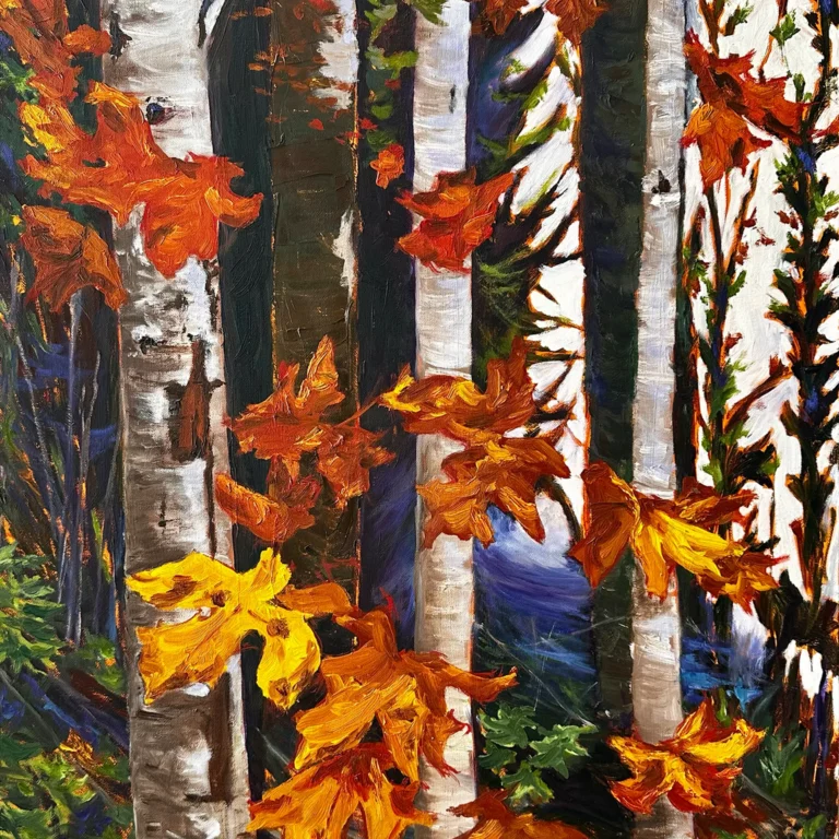 I began this painting by choosing the colour palette and then I let the painting guide me to add more colours and elements as it unfolded.