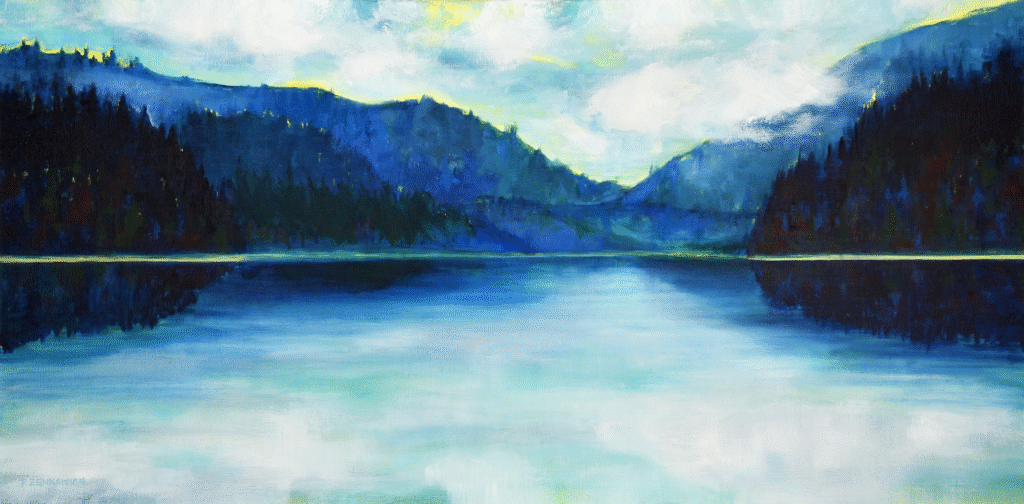 I took my parents for a drive to Buntzen Lake and brought my painting with us. Although it wasn’t easy to photograph on the sand and in the cold, it was fun to see it in the setting that inspired it. I’m always amazed at the grandeur of this little slice of paradise that I live close to. The light and clouds and atmosphere changes constantly, and provides great interest to me.